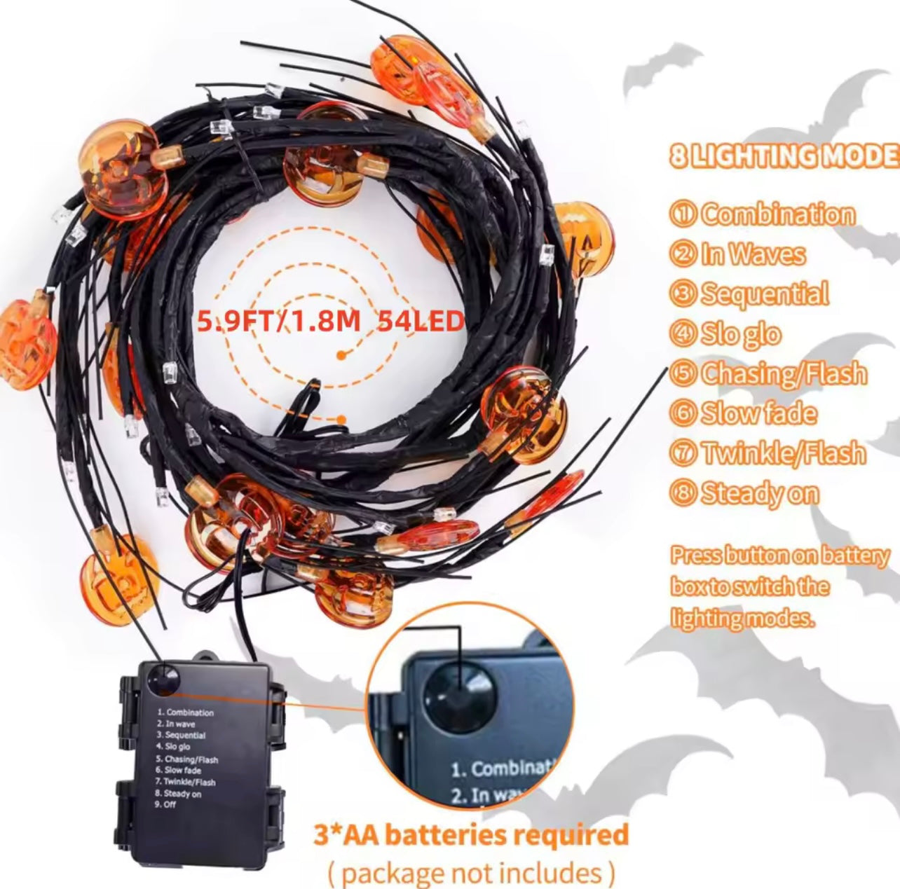 1PC 54LED Halloween Pumpkin String Light Waterproof Black Willow Vine Light Bendable Tree Lamp With Pumpkin For Party Decor